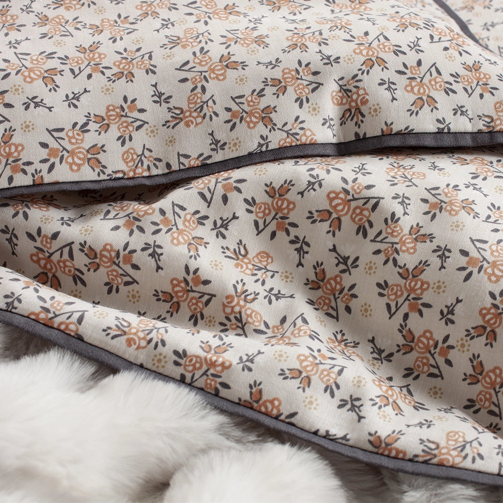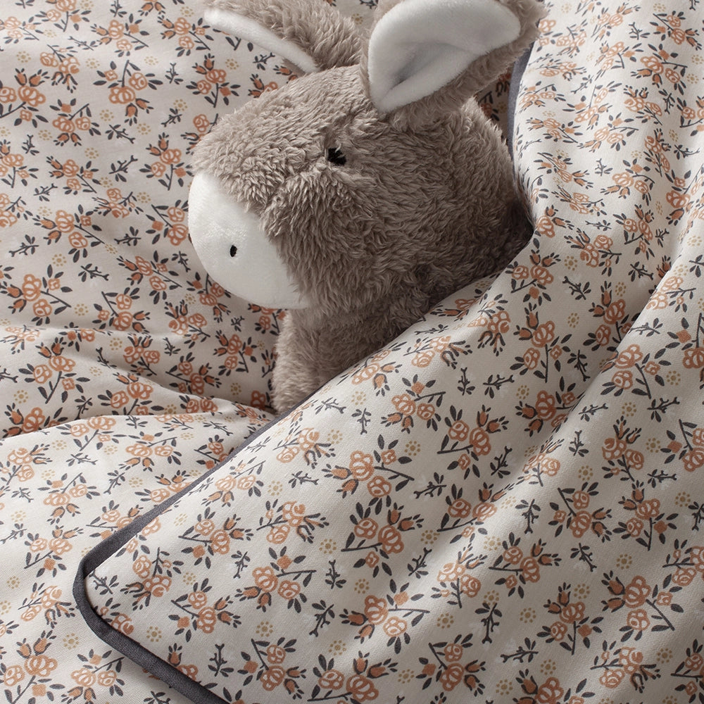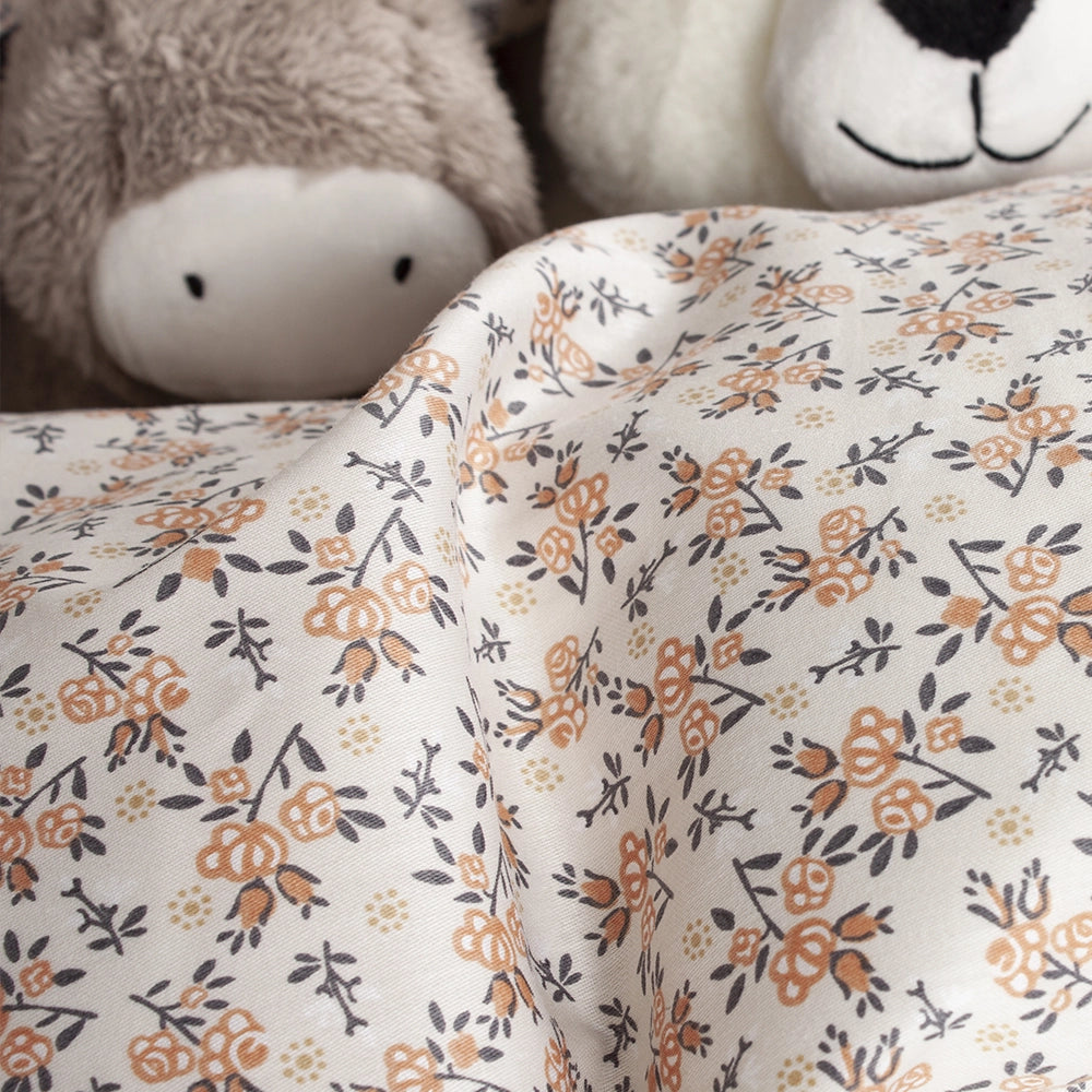 Night & Day baby sengetøj terracotta kombinerer et smukt, nordisk inspireret blomsterdesign med moderne komfort og ansvarlighed. Det varme terracotta-farvede print skaber ro, hygge og personlighed i børneværelset. Designet er tidløst og indbydende, og de fine blomster motiver stimulerer barnets fantasi og bidrager til en tryg atmosfære.