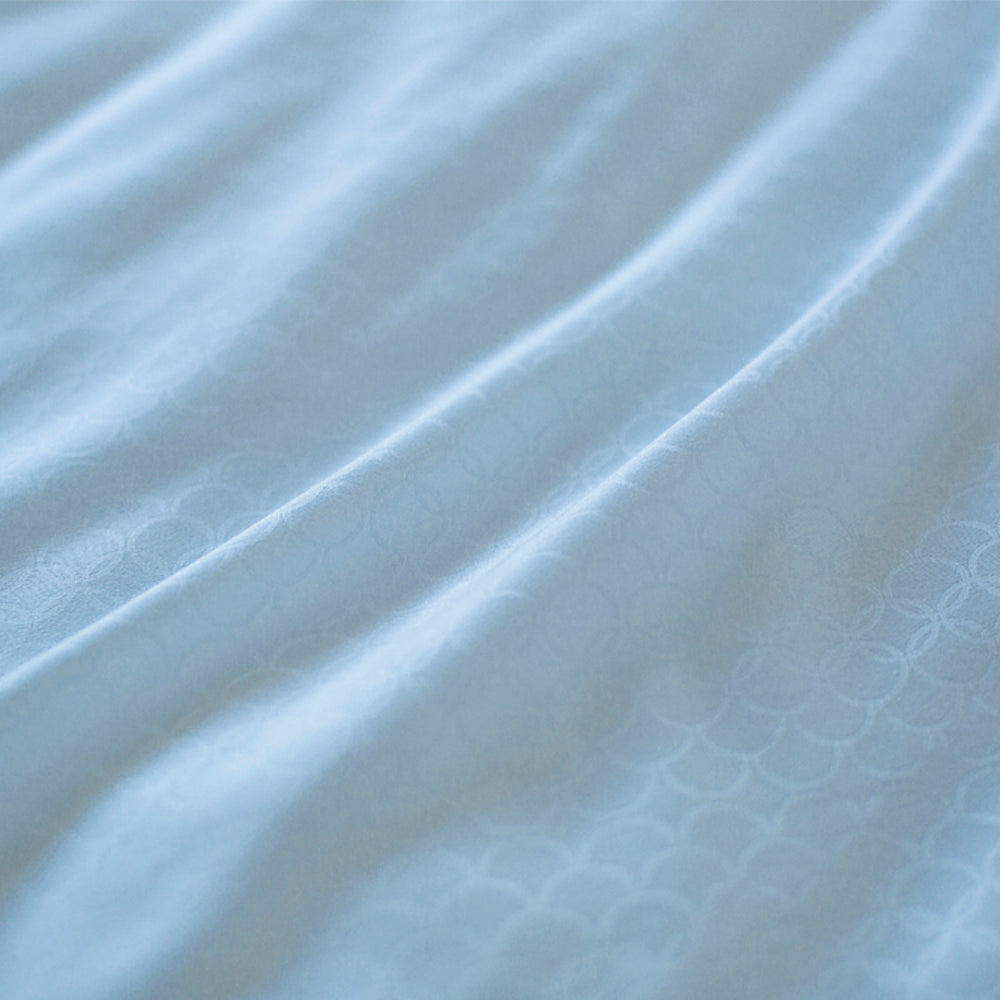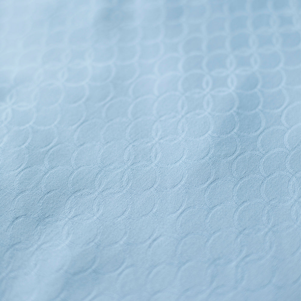 Giv din baby en tryg, blød og rolig nattesøvn med dette jacquardvævede sengetøj i 100 % bomuld – specielt tilpasset babydyner på 70×100 cm. Den sarte lyseblå nuance og det indvævede Opal-mønster skaber en himmelsk og fredfyldt base, hvor både design og komfort går hånd i hånd.