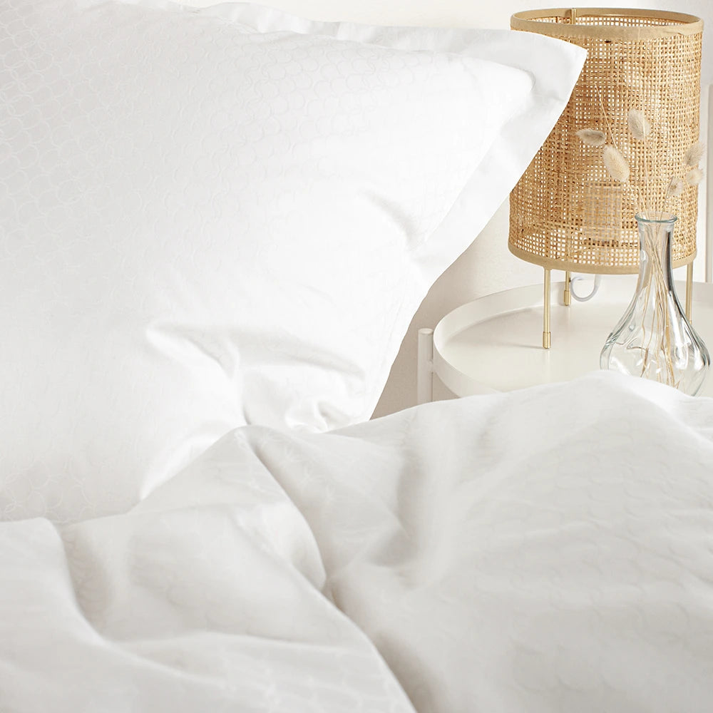 - Jacquardvævning i 100 % bomuld – skaber en silkeblød tekstur og diskret glans, som føles luksuriøs mod huden.