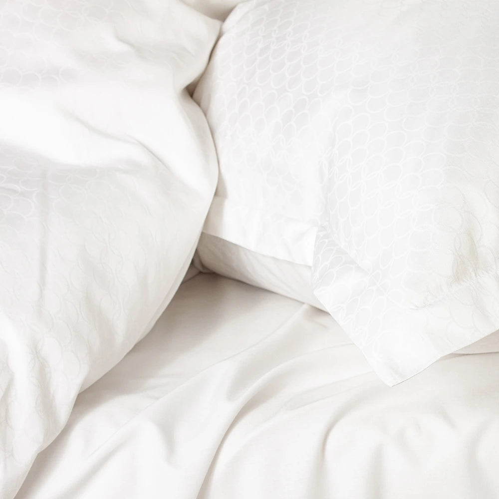 Dette sæt er for dig, der ønsker en berigende nattesøvn i en rolig og eksklusiv atmosfære, hvor æstetik, komfort og kvalitet går hånd i hånd. Jacquardvævningen tilfører et elegant og sofistikeret mønster direkte i stoffets struktur – ikke printet – hvilket sikrer, at mønstret holder sin skønhed over tid. Den rene hvide farve føles frisk og ren og fremhæver sengetøjets klassiske charme.
