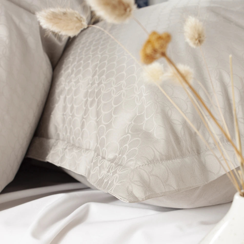 Dette jacquard sengetøj er ideelt til dig, der søger en luksuriøs oplevelse i hverdagen – uden at gå på kompromis med kvalitet, sundhed eller design. Den neutrale sandfarve bidrager til en afslappet atmosfære, og det vævede mønster giver dybde og karakter uden at dominere rummet.