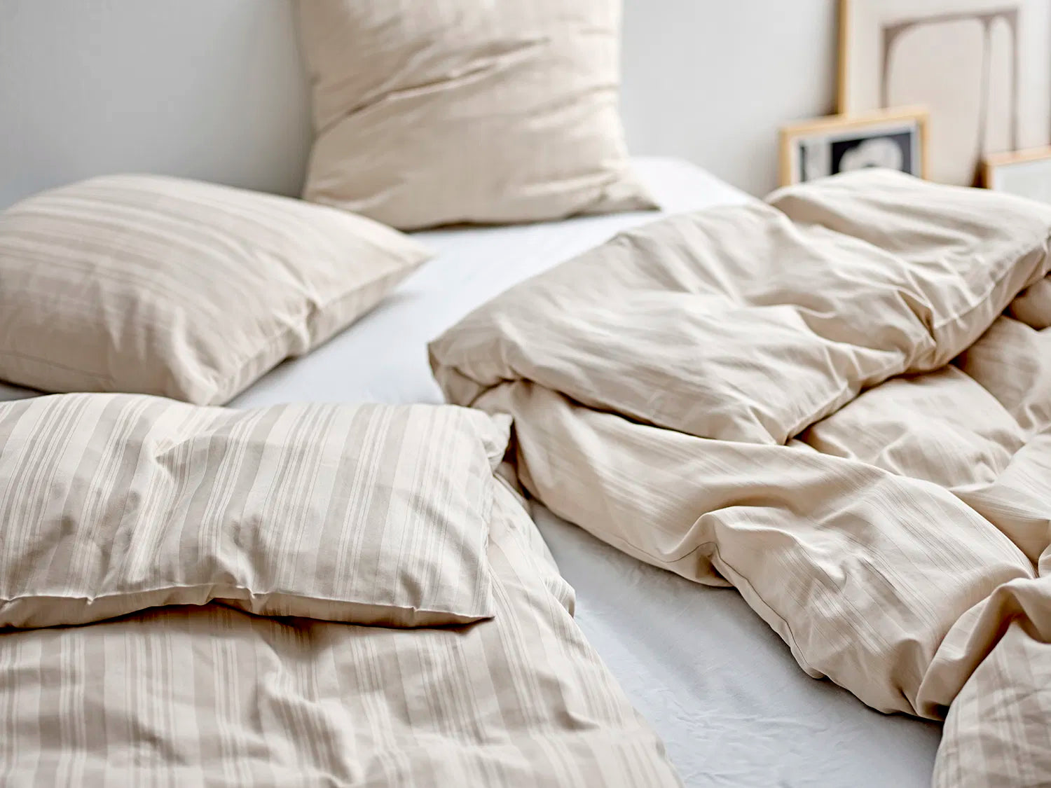 Det klassiske stribede damaskdesign giver et roligt og sofistikeret udtryk, der skaber balance og varme i rummet. Stoffets bløde, glatte overflade føles behagelig mod huden og indbyder til en afslappende nattesøvn – hver eneste nat.